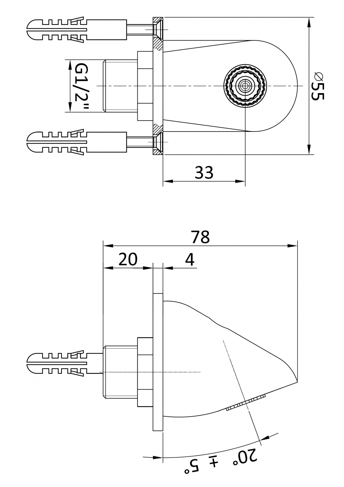Wylewka natryskowa ścienna z ruchomym sitkiem. Obudowa wylewki została wykonana z mosiądzu pokrytego chromem. Natomiast, wbudowane sitko zostało wykonane z tworzywa sztucznego, zasięg nachylenia sitka można ustawić na pozycji od 10 do 30 stopni. Wylewka posiada jedno przyłącze podłączeniowe G1/2. Temperatura podłączeniowa wody powinna mieścić się w przedziale 5-65°C, przy rekomendowanym ciśnieniu przepływu wynoszącym 2-4 bary.